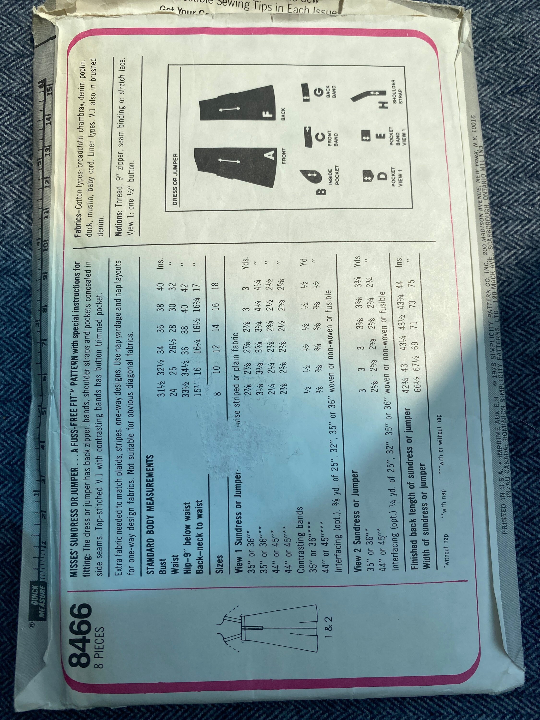Simplicity 8466 Jumper Pattern Size 12 Etsy